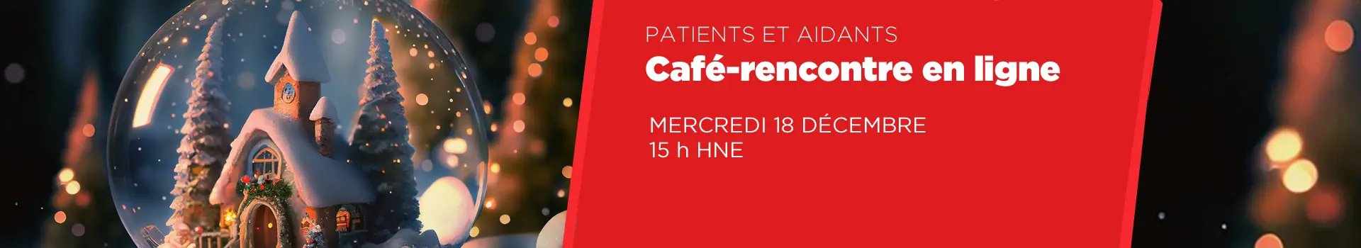 Joignez-vous à nous lors de notre prochain café-rencontre en ligne pour les patients et les aidants, mercredi 18 décembre à 15 h HNE.