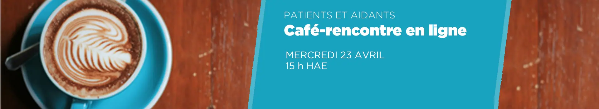 Joignez-vous à nous lors de notre prochain café-rencontre en ligne pour les patients et les aidants, mercredi 23 avril à 15 h HAE.