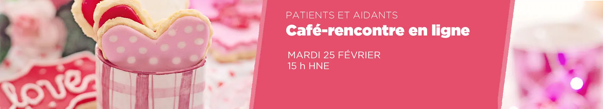 Joignez-vous à nous lors de notre prochain café-rencontre en ligne pour les patients et les aidants, mardi 25 février à 15 h HNE.