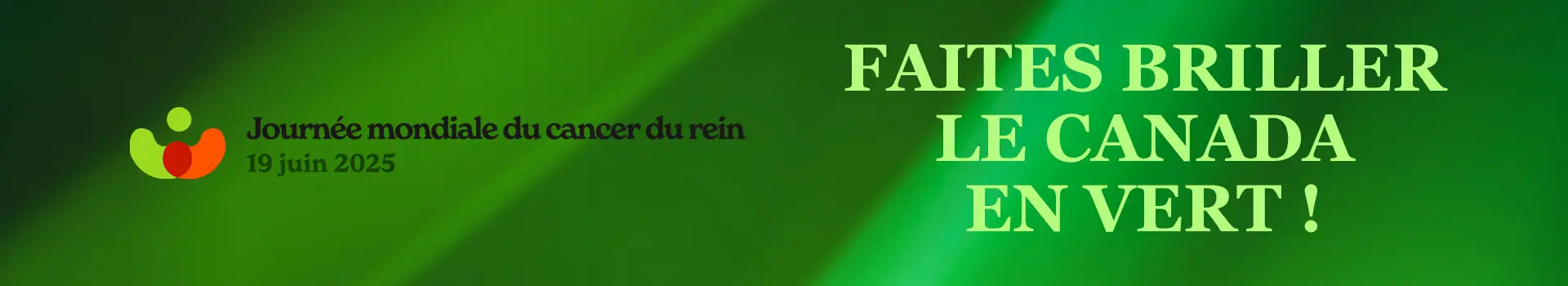 Le cancer du rein est en augmentation au Canada, et nous avons un besoin urgent de votre soutien pour aider les patients nouvellement diagnostiqués.Votre contribution à FAITES BRILLER LE CANADA EN VERT permettra de fournir aux patients et à leurs proches aidants des ressources essentielles en matière d’éducation, de soutien et de défense des droits. Ensemble, nous pouvons faire une réelle différence dans leur parcours.